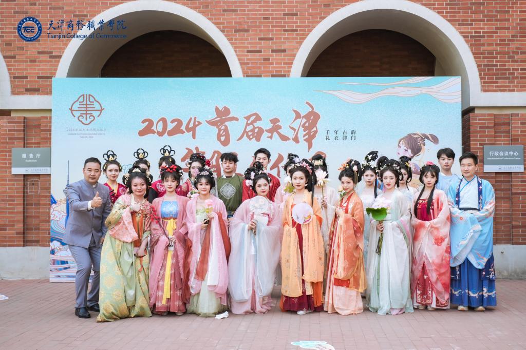 4月20日,由天津市教育委員會、天津市商務局、天津市文化和旅游局、共青團天津市委員會、天津市婦女聯合會、天津海河教育園區管委會指導,天津商務職業學院、天津市禮儀行業協會、天津市消費流通促進會聯合主辦的2024首屆天津華服文化月在天津商務職業學院學術報告廳盛大開幕。市委委員,市商務局局長、黨組書記孫劍楠、市委教育工委專職副書記孫志良出席并講話。