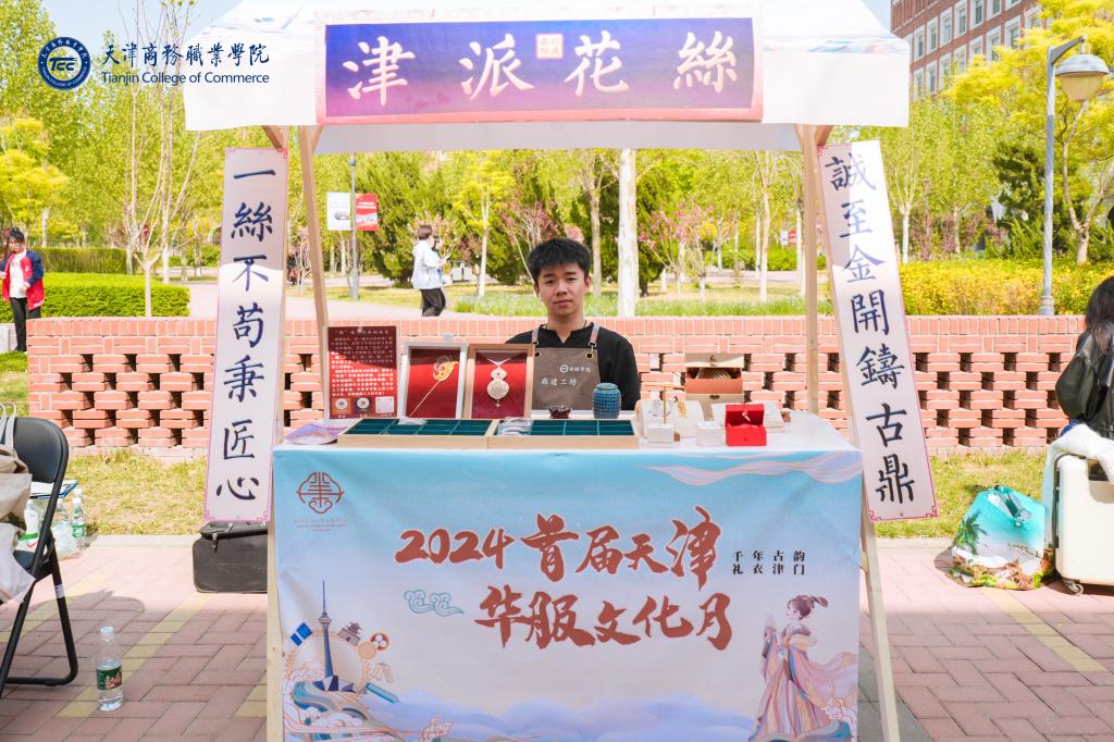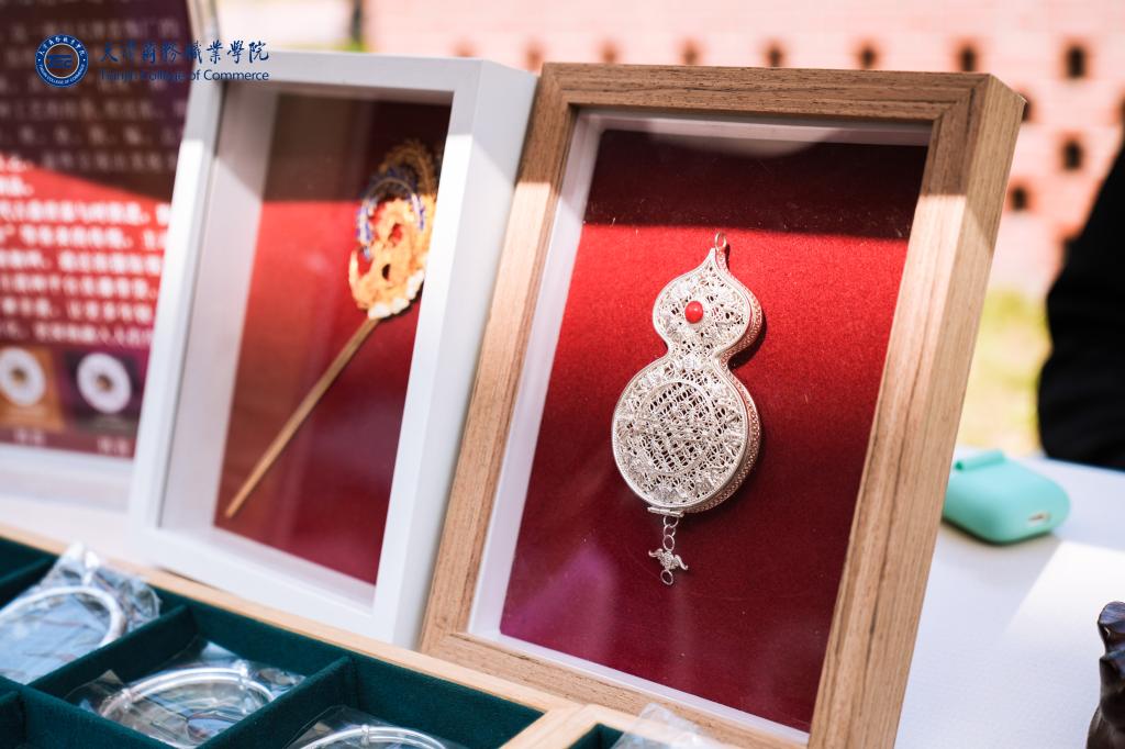 “津派花絲”在2024首屆天津華服文化月“古韻生輝·觸摸文化之魂”非遺體驗(yàn)活動(dòng)中驚艷亮相。“津派花絲制作技藝” 2022年被列入天津市級(jí)非物質(zhì)文化遺產(chǎn)代表性項(xiàng)目。“采金為絲,妙手編結(jié),嵌玉綴翠,是為一絕”,被譽(yù)為“燕京八絕”之一。天津的“老匠人”把傳統(tǒng)花絲工藝的玲瓏剔透和歐洲鑲嵌工藝的精雕細(xì)琢巧妙結(jié)合,造就了獨(dú)一無二的津派花絲制作技藝。金融學(xué)院充分利用資源優(yōu)勢(shì),自2023年開始籌備非遺工坊建設(shè),與“津派花絲制作技藝”非遺項(xiàng)目生產(chǎn)基地交流研討,邀請(qǐng)非遺大師走進(jìn)校園、走進(jìn)課堂,分享技藝心得與創(chuàng)作經(jīng)驗(yàn),引領(lǐng)師生更加深刻地體會(huì)非遺技藝的傳承與創(chuàng)新,體會(huì)“大國(guó)工匠”的時(shí)代精神。同時(shí),多次組織學(xué)生赴生產(chǎn)基地實(shí)習(xí)、參觀,了解傳統(tǒng)工藝,在心中埋下傳承非遺的種子。在天津市津南區(qū)文旅局、海河教育園區(qū)、海棠街聯(lián)合舉辦的第三屆“海棠花兒開”文化藝術(shù)節(jié)上,金融學(xué)院展示的精美花絲配飾受到了廣大民眾的關(guān)注。精細(xì)的纏花工藝令人贊嘆,仿佛將時(shí)光凝固在了每一個(gè)獨(dú)特的造型之中,讓人感受到歲月的深沉與靜美,深感中國(guó)優(yōu)秀傳統(tǒng)文化的無窮魅力。