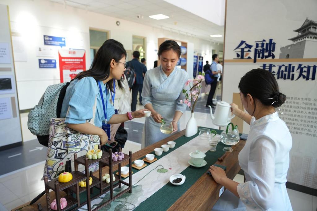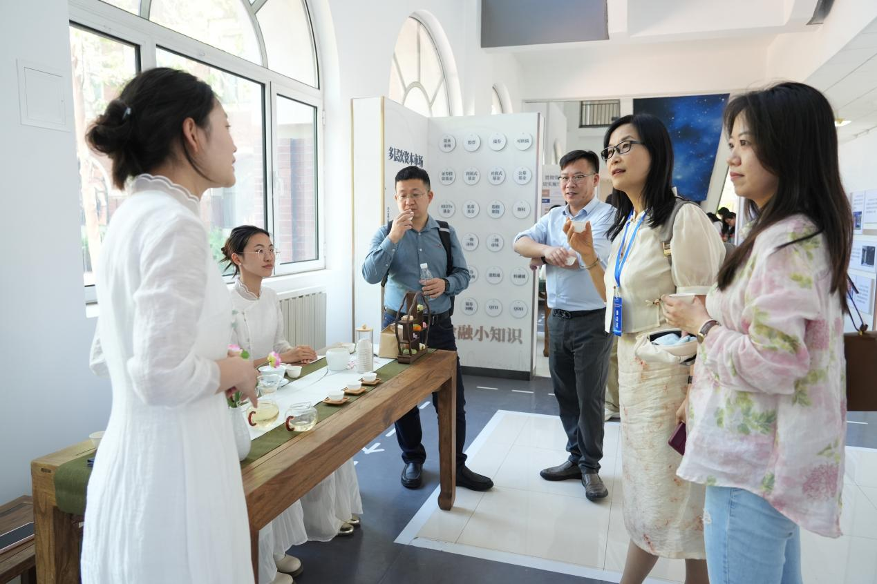 恰逢首屆天津華服文化月,全國(guó)的參會(huì)教師觀看了華服巡游,旅游學(xué)院茶藝與茶文化專業(yè)的學(xué)生現(xiàn)場(chǎng)為來(lái)自全國(guó)的金融行指委委員和參會(huì)教師進(jìn)行了茶藝表演并交流茶文化,優(yōu)雅自信的年輕人成為中華優(yōu)秀傳統(tǒng)文化的傳播者,也讓整場(chǎng)活動(dòng)的科技感有了茶香雅韻?,F(xiàn)代科技和傳統(tǒng)文化相互交融,為與會(huì)嘉賓帶來(lái)一場(chǎng)奇妙的體驗(yàn)。