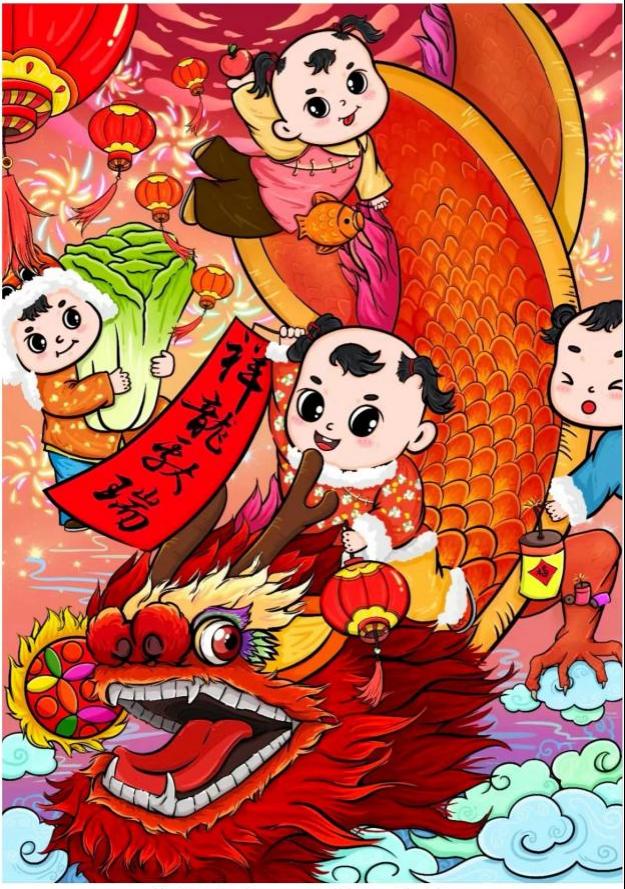 一等獎獲獎作品中,學生們通過細膩的筆觸和豐富的色彩,將年畫中的傳統元素與現代審美完美結合,創作出既有傳統韻味又不失現代感的佳作。二等獎和三等獎的作品展示著學生們對年畫藝術的熱愛和追求,在表達主題、構圖和色彩運用上也有著不俗的表現。