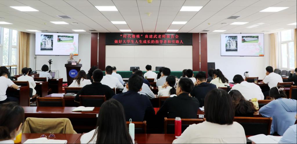 為深入學習貫徹習近平新時代中國特色社會主義思想,全面提高學校思想政治工作質量,以榜樣引領強化思政隊伍建設,近日,在校黨委、校行政的關懷和指導下,“時代楷模”、“全國教學名師”、“全國師德標兵”、“全國高校輔導員年度人物”、“最美奮斗者”、“全國道德模范”、“全國優秀教師”等榮譽稱號獲得者,大連海事大學馬克思主義學院博士生導師曲建武教授受邀來校,為學校全體輔導員作報告,報告會由校黨委副書記黃向榮同志主持。