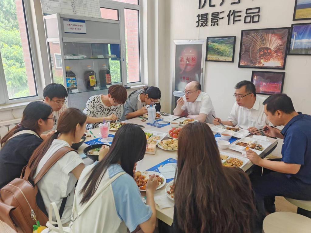 最后,馬雷與學生代表一同前往學生食堂共進午餐,詳細詢問了同學們在校學習、生活情況以及家庭情況、個人發展等,鼓勵同學們堅定理想信念,扎實學好理論知識和專業知識,積極參加體育鍛煉強健體魄和社會實踐鍛煉,不斷增強綜合素質與能力,為全面建設社會主義現代化國家貢獻青春擔當!