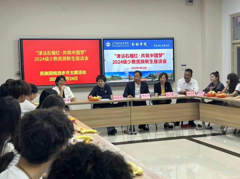 為深入學習貫徹黨的二十屆三中全會精神,學習落實習近平總書記關于加強和改進民族工作的重要思想,進一步鑄牢中華民族共同體意識,慶祝中華人民共和國成立75周年華誕,加強各民族師生之間的深厚感情,幫助少數民族新生更進一步融入校園生活,系好大學生涯的“第一粒扣子”,圍繞“津沽石榴紅·共筑中國夢”民族團結進步月活動主題,黨委統戰部牽頭,金融學院組織召開2024級少數民族新生座談會。黨委委員、副校長楊冠聲參加座談。