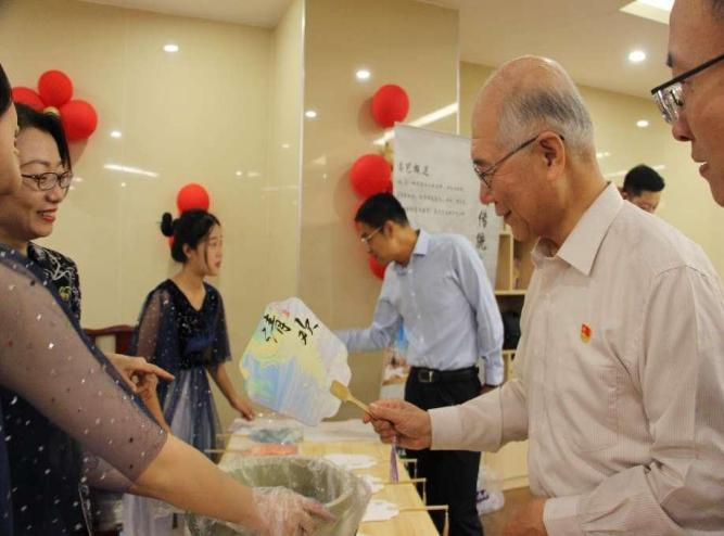 會計學院教師和志愿者向市教委繼續教育處的負責人以及全市社區教育領域的負責人展示了我校針對社區居民開展的理財防詐知識宣傳冊、剪紙、漆畫等特色課程。
