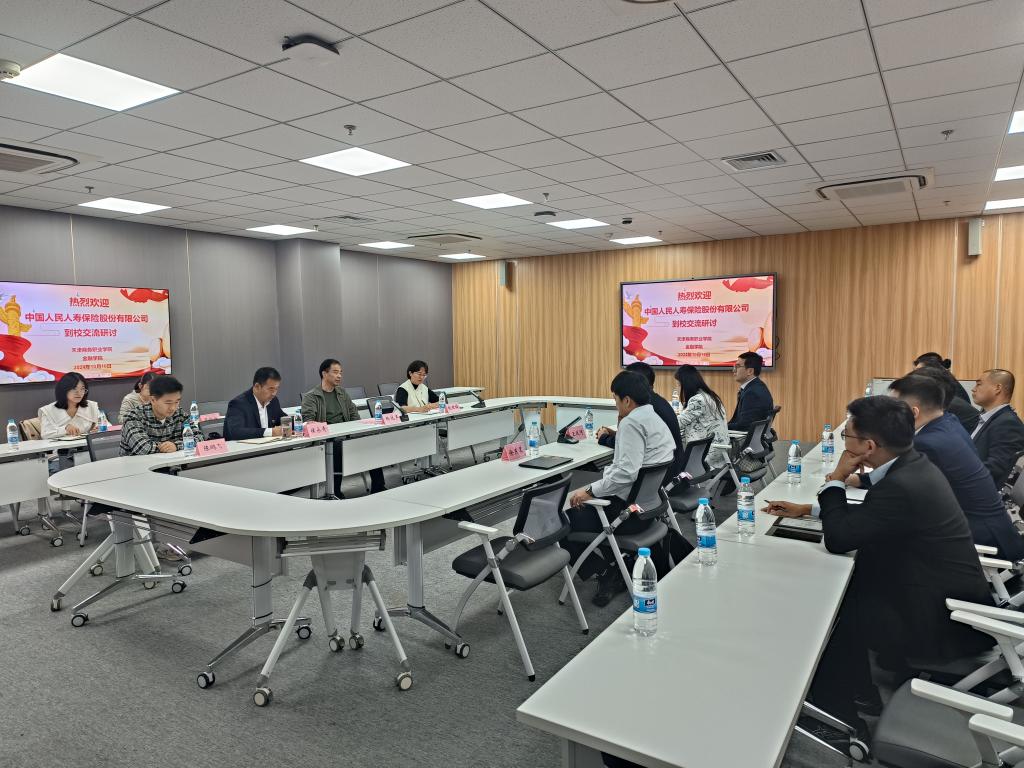 中國人民保險公司總公司個險新軍發展部處長萬璐、徐東星,天津市分公司副總經理王延河、天津市分公司新軍發展部總經理王華岳分別介紹了集團發展歷程、社會責任履行情況、政企服務項目情況,并就今后校企雙方通過戰略合作加強聯合黨建、人才培養、專業建設以及教職工福利保障等方面交換了意見。來自京津冀、環渤海區域中國人保各省市分支公司相關負責同志一同到校參與對接洽談。