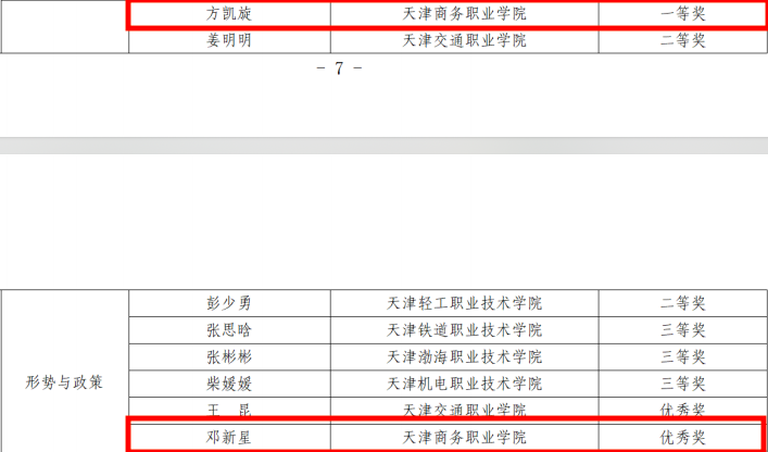 近日,天津市教育兩委公布了天津市第五屆思政課教學比武獲獎名單。我校馬克思主義學院方凱旋、鄧新星老師分別榮獲“形勢與政策”課一等獎、優秀獎,周金金老師榮獲“毛澤東思想和中國特色社會主義理論體系概論”課優秀獎。