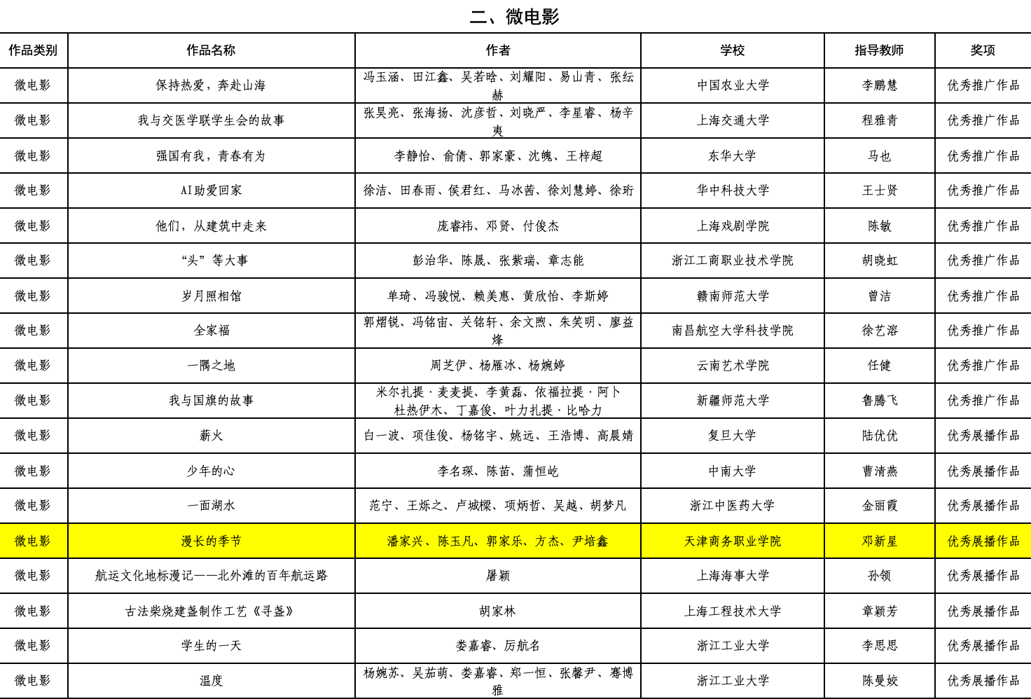 近日,教育部思想政治工作司、中央網信辦網絡社會工作局公布了第七屆全國大學生網絡文化節和全國高校網絡教育優秀作品推選展示活動遴選結果,我校馬克思主義學院鄧新星老師指導國際貿易學院潘家興、陳玉凡、郭家樂、方杰、尹培鑫等同學拍攝的微電影作品《漫長的季節》脫穎而出,榮獲微電影類全國優秀展播作品(二等獎)。
