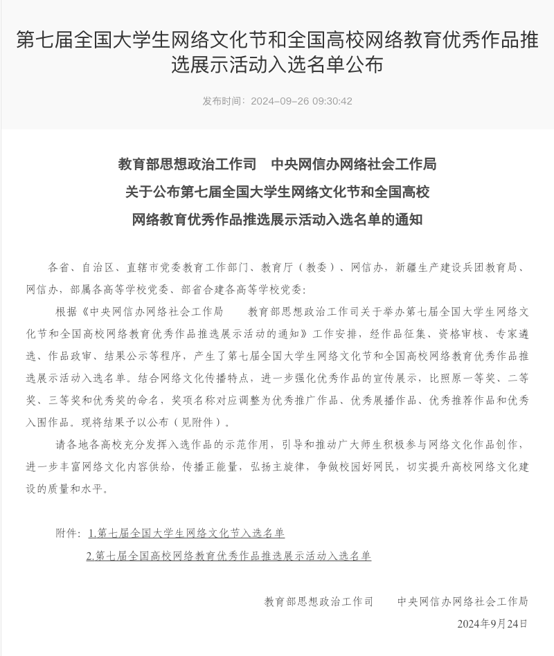 據悉,全國大學生網絡文化節和全國高校網絡教育優秀作品推選展示活動是全國高校網絡思政領域級別最高、覆蓋面最廣的競賽之一。此次獲獎是我校首次在該項賽事中斬獲佳績,不僅為學校贏得了榮譽,提升了我校的知名度和美譽度,而且也是對我校思政課教學改革舉措的充分肯定。下一步,馬克思主義學院將持續發揮網絡育人功能,鼓勵廣大師生充分利用網絡新興媒介,創作更多形式新穎、內容豐富的網絡優秀作品,準確把握網絡育人的價值定位、內在機理和實踐導向,用積極健康、向上向善的網絡文化浸潤學生心靈,激勵學生成長,扎實推動我校學生思想政治工作再上新臺階。