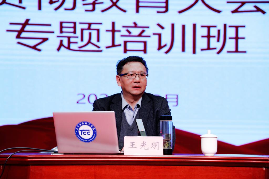 專題培訓班邀請天津市教育科學研究院副院長王光明教授,以“教育強國的深邃內涵及建設理路”為題目,圍繞教育強國的內涵與歷史背景、教育強國的建設歷程與成就、教育強國的戰略目標與意義、教育強國建設的要素與建成教育強國的要素、天津教育大會精神以及建設教育強國高職院校新作為的建議六個方面對教育大會精神進行全面系統的解讀。邀請天津輕工職業技術學院黨委副書記、院長李云梅教授,以“國際合作激活職業教育高質量發展的新動能”為主題,從十大模式提升國際合作廣度、魯班工坊根植國際合作深度、國際合作賦能院校創新發展、世界職教聯盟激活新動能四個方面,分享了天津輕工職業技術學院的國際化辦學經驗,為我校推進國際化辦學提供了有益的思路與借鑒。