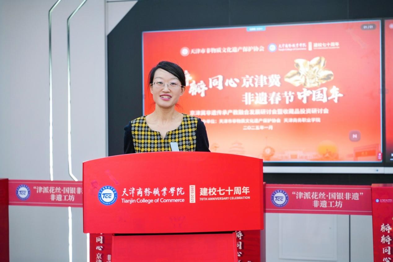 1月5日,新年伊始“瓣瓣同心京津冀 非遺春節(jié)中國年”京津冀非遺傳承產(chǎn)教融合發(fā)展研討會暨收藏品投資研討會在天津商務(wù)職業(yè)學(xué)院順利召開,開啟我校高質(zhì)量發(fā)展建設(shè)年暨建校70周年系列活動篇章。津南區(qū)副區(qū)長、區(qū)政府黨組成員劉焱出席會議并致辭。京津冀三地近30余個政府部門、行業(yè)協(xié)會、金融企業(yè)多向奔赴,歡聚一堂,共話非遺傳承,共研藝術(shù)品金融。非遺傳承人和學(xué)校退休老領(lǐng)導(dǎo)參會向?qū)W校捐展并致辭。校黨委書記馬雷,黨委副書記、校長黃鳳羽,黨委副書記黃向榮,副校長楊冠聲、武春平出席會議。天津音樂廣播節(jié)目編導(dǎo)陳凌靈擔(dān)任研討會開幕式主持人。