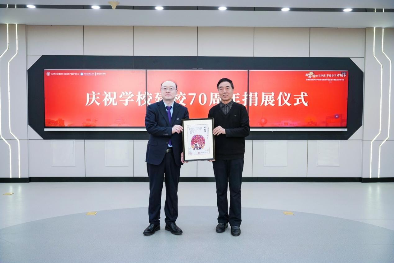 2025年正逢我校建校70周年,非遺工坊共建單位古鼎世家(天津)珠寶有限公司、國家級非遺項(xiàng)目(蔚縣剪紙)代表性傳承人、天津市級非遺唐氏郵票畫傳承人及學(xué)校退休老領(lǐng)導(dǎo)為學(xué)校捐展珍品佳作,祝福學(xué)校再創(chuàng)輝煌。
