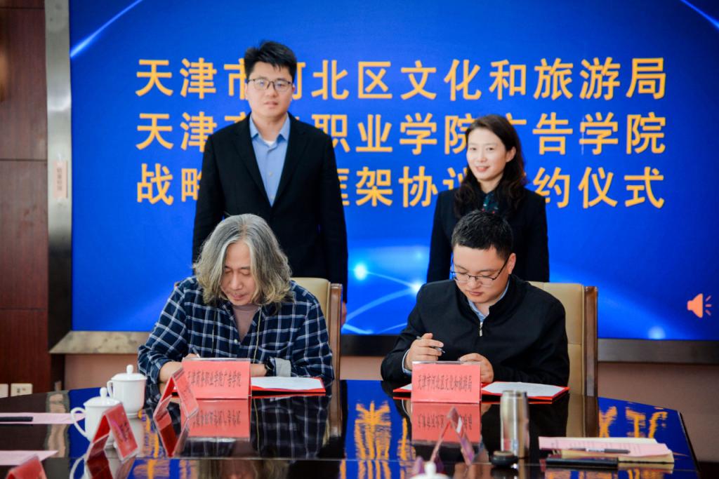 在數(shù)字經(jīng)濟(jì)澎湃浪潮的席卷下,文旅產(chǎn)業(yè)正經(jīng)歷著一場數(shù)字基因重構(gòu)的深刻變革。2025年3月22日上午,天津商務(wù)職業(yè)學(xué)院廣告學(xué)院與天津市河北區(qū)文化和旅游局在天津市河北區(qū)人民政府會議室成功簽訂了戰(zhàn)略合作框架協(xié)議。天津商務(wù)職業(yè)學(xué)院黨委副書記黃向榮與河北區(qū)副區(qū)長段雅睿出席并見證了這一重要簽約時(shí)刻。