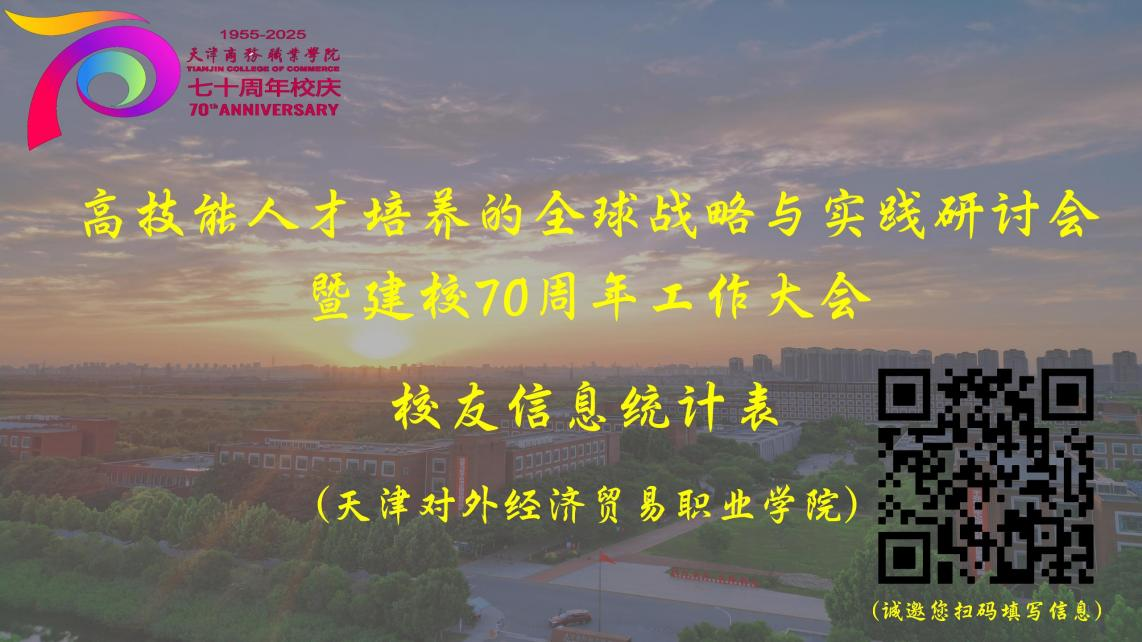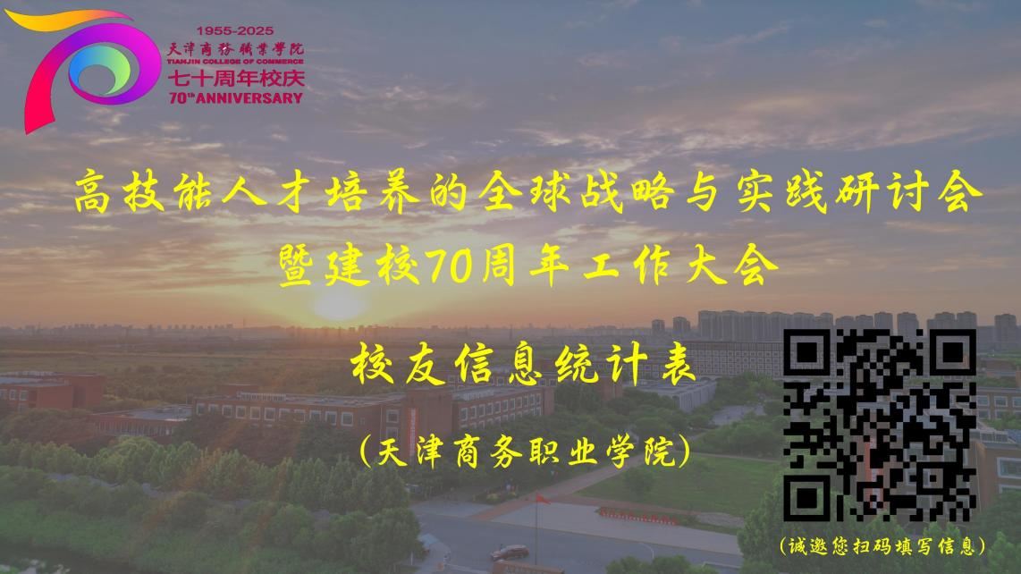 2025年5月10日,天津商務職業(yè)學院將迎來建校70周年。為全面回顧學校70年的辦學歷程,展示宣傳辦學成就,學校將召開“高技能人才培養(yǎng)的全球戰(zhàn)略與實踐研討會暨天津商務職業(yè)學院建校70周年工作會”。