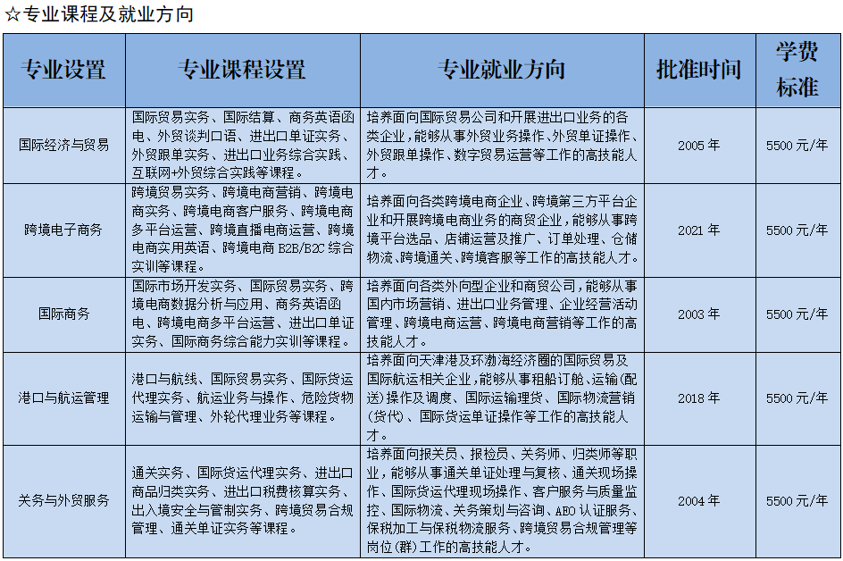 關(guān)務(wù)與外貿(mào)服務(wù)專業(yè)系教育部認(rèn)定的國家級骨干專業(yè),天津市頂尖專業(yè)之一,在全國關(guān)務(wù)與外貿(mào)服務(wù)專業(yè)影響力名列前茅。專業(yè)師資力量雄厚,擁有關(guān)務(wù)優(yōu)秀教學(xué)團(tuán)隊和全國關(guān)務(wù)專業(yè)教學(xué)名師,領(lǐng)銜建設(shè)國家級關(guān)務(wù)與外貿(mào)服務(wù)專業(yè)教學(xué)資源庫。始終堅持深化校企合作,探索產(chǎn)教融合模式,先后與行業(yè)龍頭企業(yè)合作,建設(shè)完成國家級生產(chǎn)型實訓(xùn)基地1個,國家級協(xié)同創(chuàng)新中心1個、國家級現(xiàn)代學(xué)徒制試點1個,與振華物流集團(tuán)報關(guān)行合作建設(shè)“校中企”項目,校企共同育人。推進(jìn)課賽融合,關(guān)務(wù)學(xué)生技能賽場展風(fēng)采,在2024年世界職業(yè)院校技能大賽中榮獲金獎,在歷年全國、天津市職業(yè)技能大賽中斬獲一等獎多項,有多名學(xué)生保送本科學(xué)習(xí)。