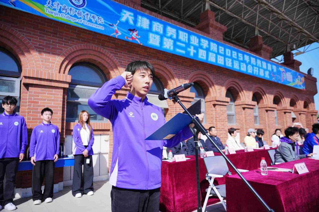學(xué)校黨委書記馬雷宣布2025年陽光體育節(jié)開幕。黨委副書記、校長(zhǎng)黃鳳羽致開幕辭。裁判員代表體育教學(xué)部金尚璐老師,運(yùn)動(dòng)員代表旅游學(xué)院張興威同學(xué)莊嚴(yán)宣誓。
