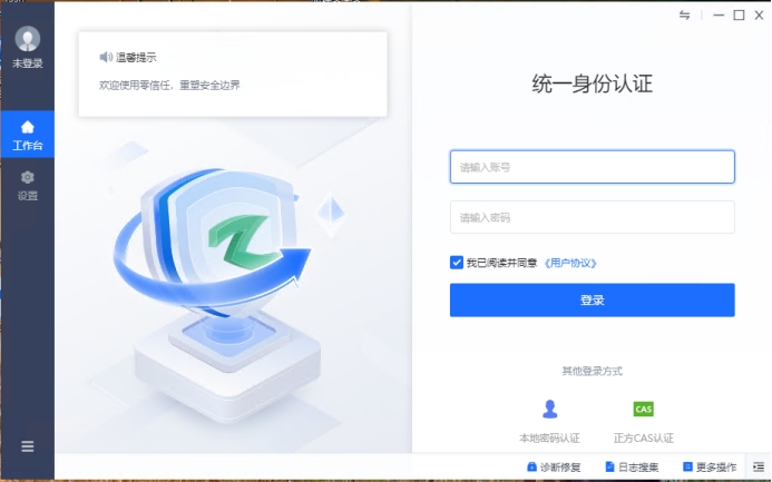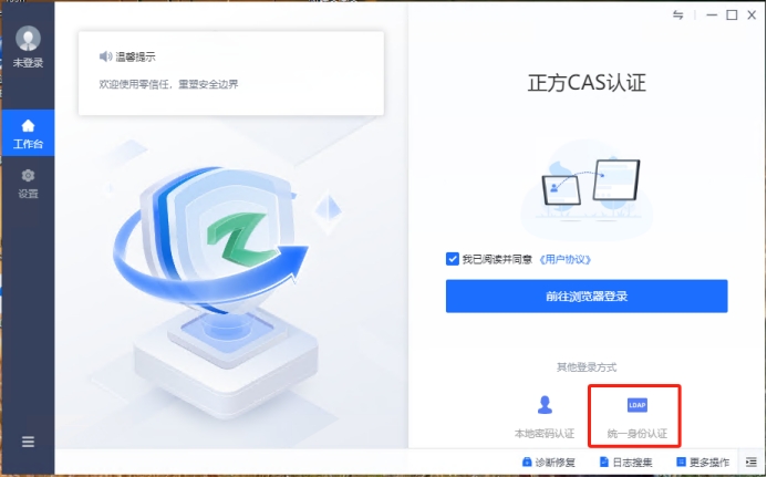 4.在客戶端登錄界面右下角點(diǎn)擊【統(tǒng)一身份認(rèn)證】