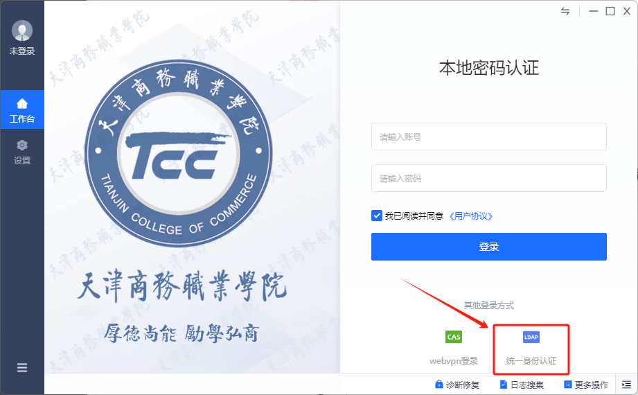 7. 在客戶端登錄界面右下角點擊【統(tǒng)一身份認(rèn)證】